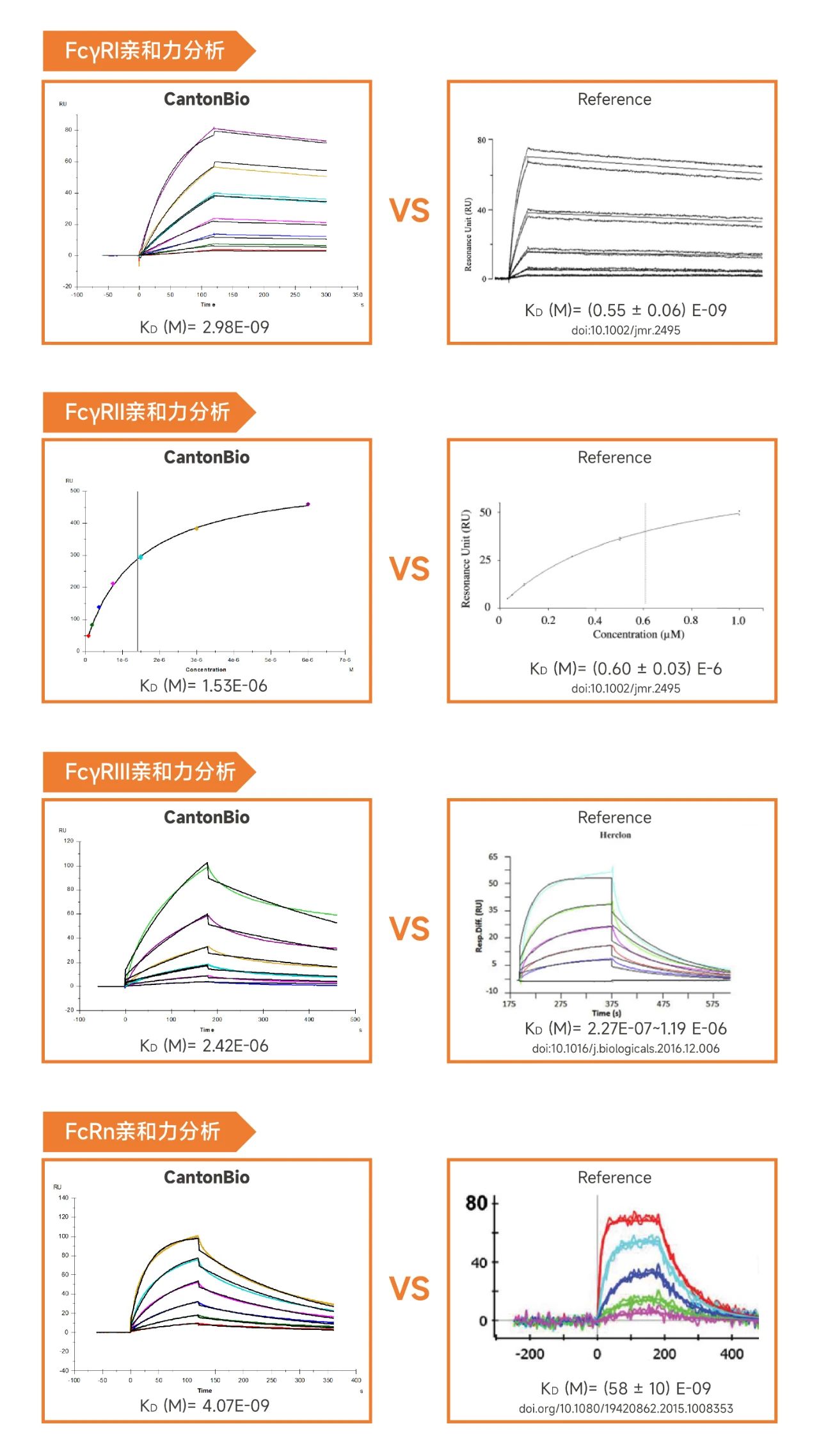 汉腾生物Fcγ受体SPR亲和力分析示例